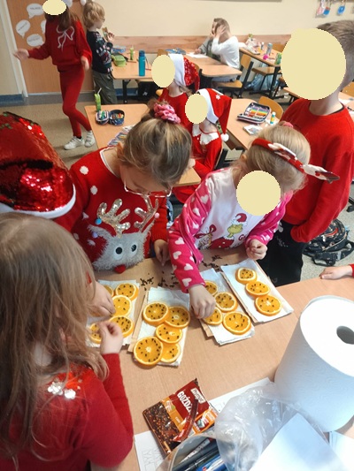 W klasach odbywały się wigilie klasowe, podczas których uczniowie wspólnie spędzali czas, dzielili się dobrym słowem, składali sobie życzenia oraz wręczali przygotowane prezenty. Nie zabrakło również wyjątkowego gościa – Świętego Mikołaja, który wywołał wiele uśmiechów i radości, szczególnie wśród najmłodszych.